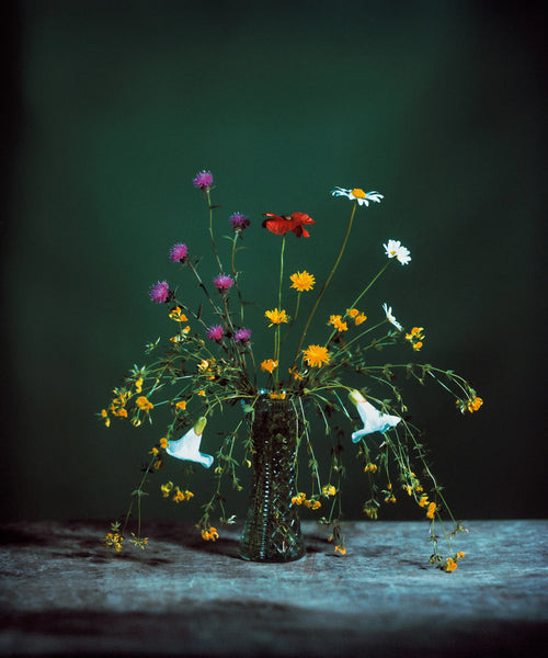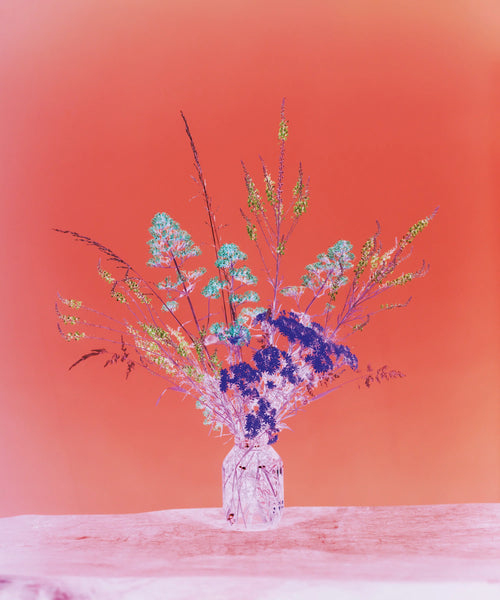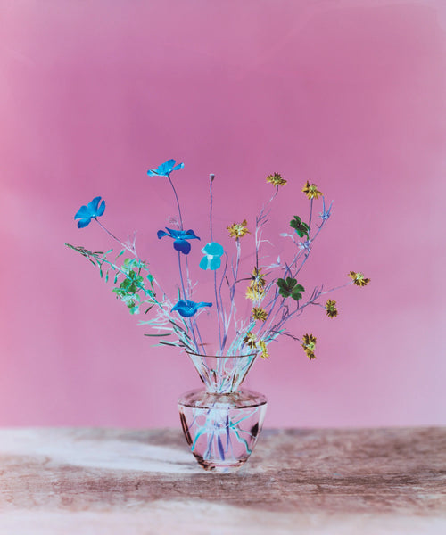 The photographs were made during the spring, summer and early autumn of 2020. Each day during the Covid lockdowns, Barry would go for a walk with his daughter around their neighbourhood. They began a tradition of picking wildflowers—California poppy, cow parsley, cornflower, Queen Anne’s lace, hogweed, field scabious, dove’s foot crane’s bill, meadow buttercup—bringing them home to arrange in vases to be photographed.