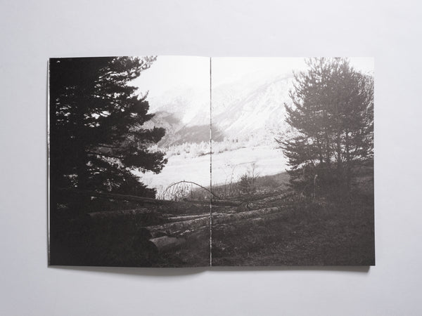 Florence Cuschieri captures these traveled paths, where tangible wandering dissolves into the silence of the surroundings. The mountain, the forest, the fir trees—each becomes a vessel cradling vulnerable exiled bodies who have found refuge at Chez Marcel, a self-managed space in the French Hautes-Alpes near Briançon. The land she photographs appears suspended in a state of latency, echoing the waiting of those who tread upon it. Their footsteps carve circles into the ground, mirroring the swirling flight of swallows.