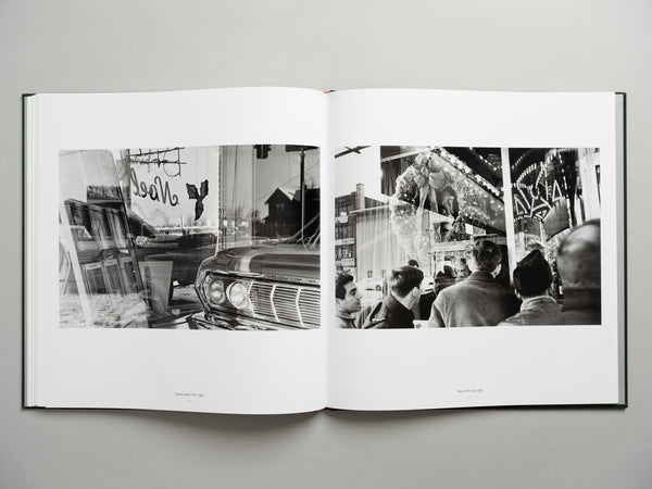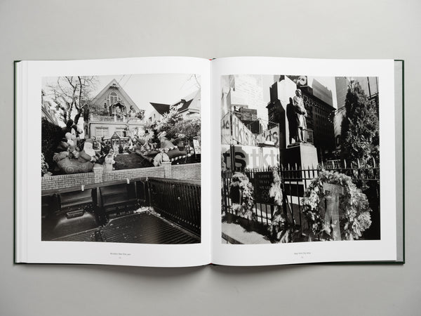 Whether or not you celebrated Christmas at some point during the last 70 years, you have no doubt encountered many of the scenes shown here in Lee Friedlander's eclectic black-and-white documentation of the holiday season across America. From city sidewalks to cookie-cutter suburbs, Friedlander captures it all: main street store window displays; plastic nativities on snow-covered lawns; inflatable snowglobes and Santa Clauses; questionable St. Nicholas–themed lingerie; oversize or underwhelming Christmas trees; and houses so covered in string lights as to demand nothing short of a miracle from the local power grid.
