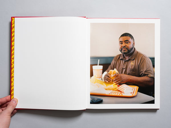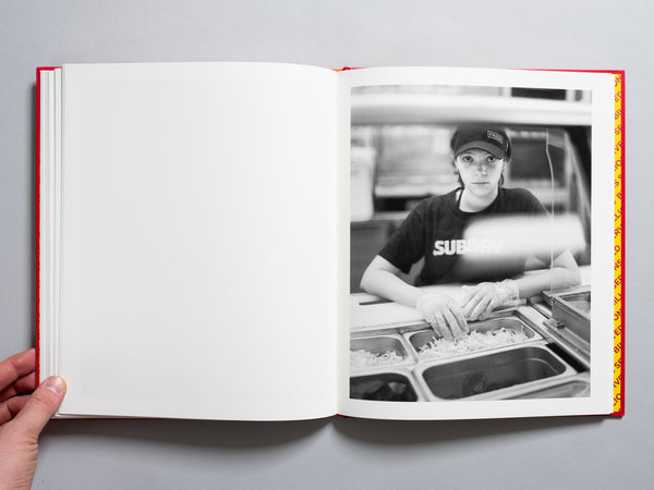 In Billions Served, Richard Renaldi once again offers his large format portraiture as an invitation to slow down and see familiar sights in new light. The title, taken directly from the boastful catchphrase "Billions and billions served", at once acknowledges the economics of American fast food while simultaneously signaling that those billions of burgers have been served both to and by billions of people. Contrary to the nature of fast food environs where subtle cues direct us through choreographed movements toward ever swifter commerce & consumption, Renaldi invites the viewer to pause and actively participate in each moment. His black & white photos neutralize the riot of color otherwise drawing our eyes; color portraits place fellow patrons center stage, from out of the recesses where corporations would let them fade. The result is a new way of actively engaging these often frequented but seldom-considered scenes with a spotlight on humanity.