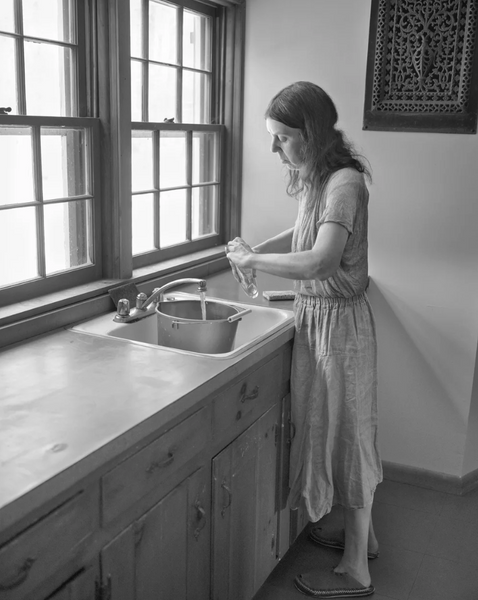 4 Sides of The Table was made from 2022-24. In the spring of 2017, I was with my mother in an empty room. The light of the sun was shining through the windows. Her best friend June was at her bedside reading poetry aloud. My mother died a few hours later. Since I could no longer take pictures of my mother, it seemed natural to me to photograph June. I photographed her hands, her legs, from the back, from the front, partial views etc. feeling I could convince myself she was my mother more easily by photographing her in parts rather than in showing her whole figure. During the months that I was visiting June, her daughter unexpectedly passed away. I thought after that she might not want to continue our time together taking pictures, but she did. The camera gave us the freedom we needed to imagine we belonged to each other.